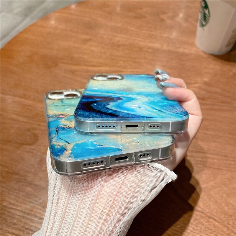 大理石柄 iPhone14 Proケース 貝殻柄 アイフォン 13カバー 個性的 iPhone12 ProMaxケース 可愛い iPhone11 Proケース ブルー系 オシャレ