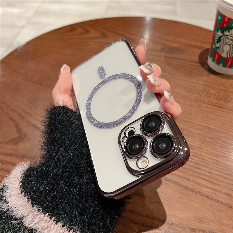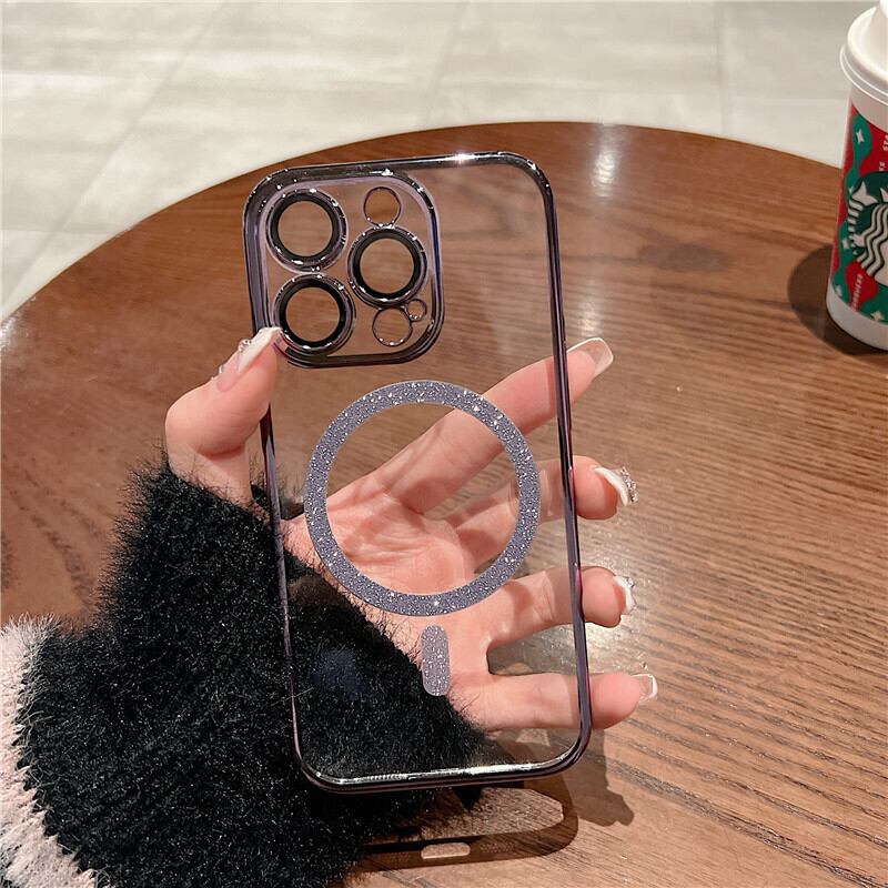 iPhone14 ProMax~12ケース MagSafe対応 ラメ入り アイフォンカバー 無地 シンプル 可愛い クリア 6色
