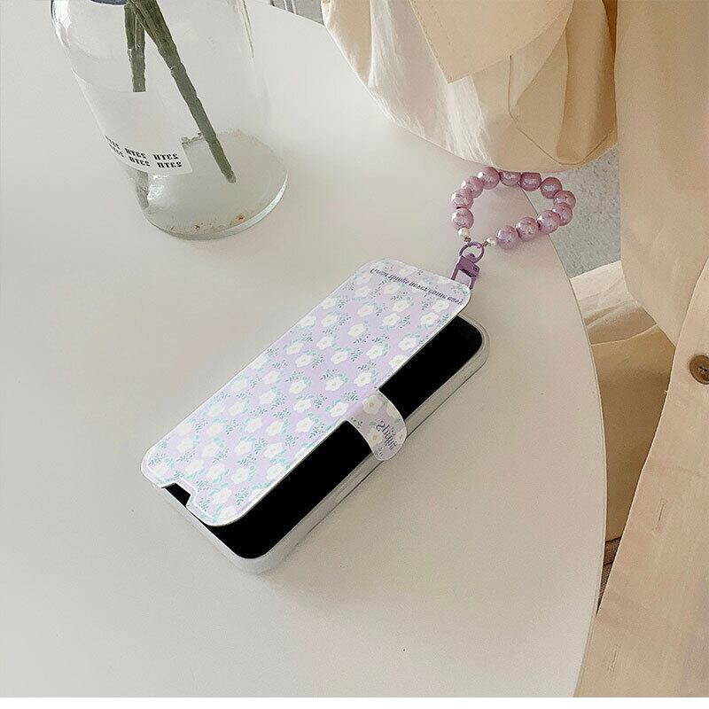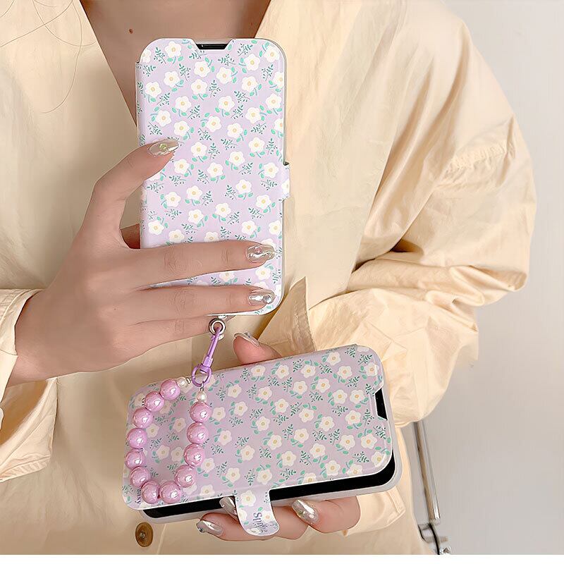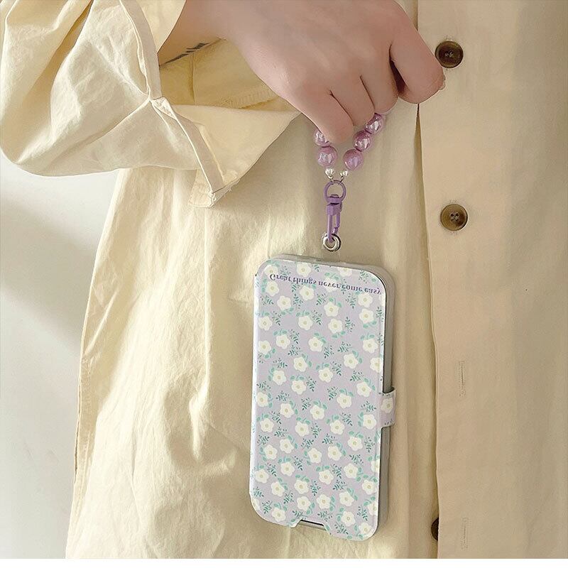女性向けの可愛い花柄がデザインで、更に便利なストラップ付き!
