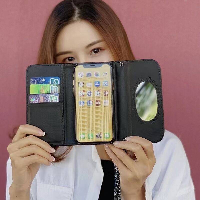 ストラップ付き iPhone14Plus 13 12ProMax 11Proケース 財布型 アイフォンカバー カード収納 ミラー付き お洒落 ショルダースマホケース