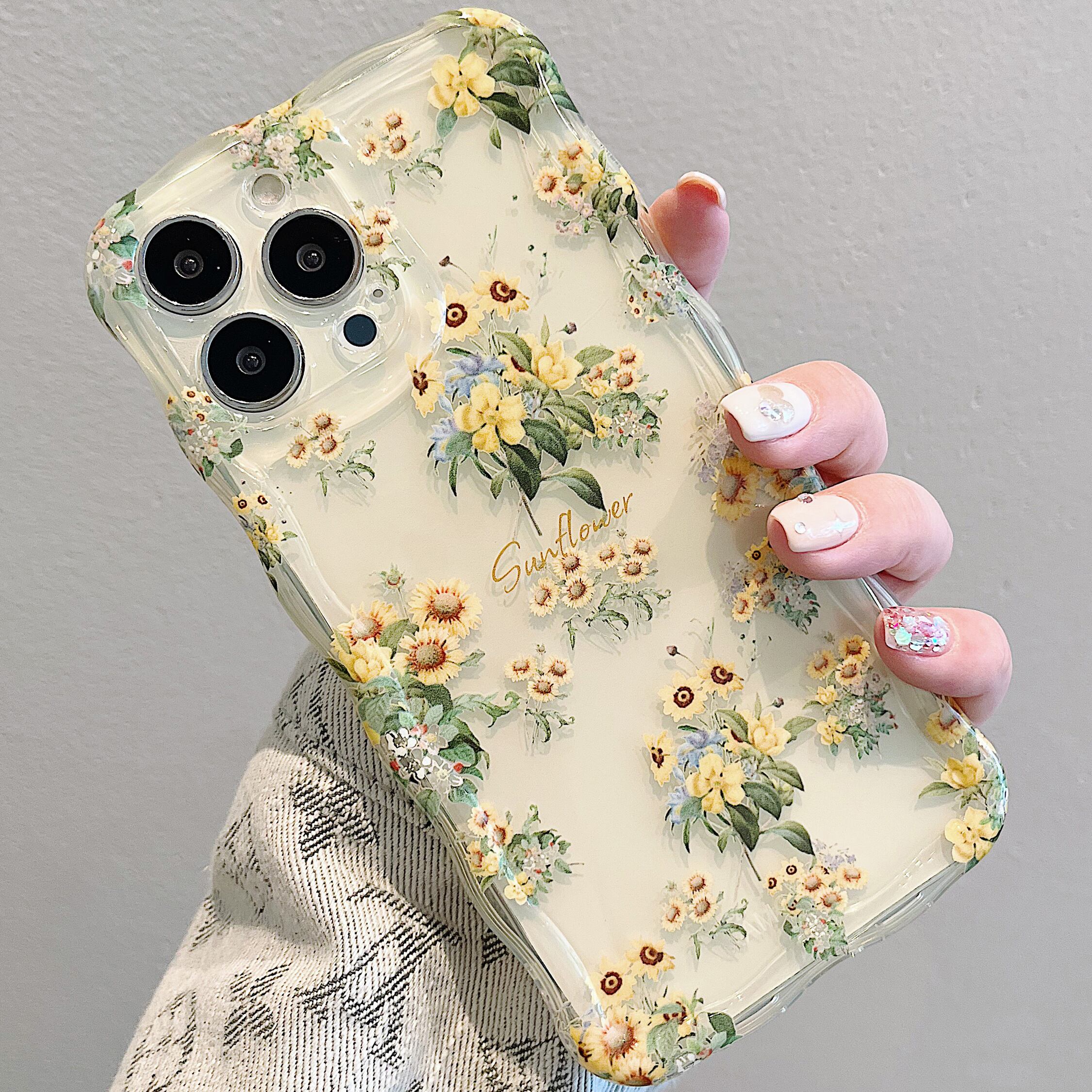 掴みやすい iPhone14 Pro Max・13・12 Pro・11ケース 花柄 アイフォンケース イエロー 可愛い オシャレ 波模様 おすすめ