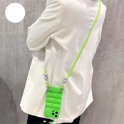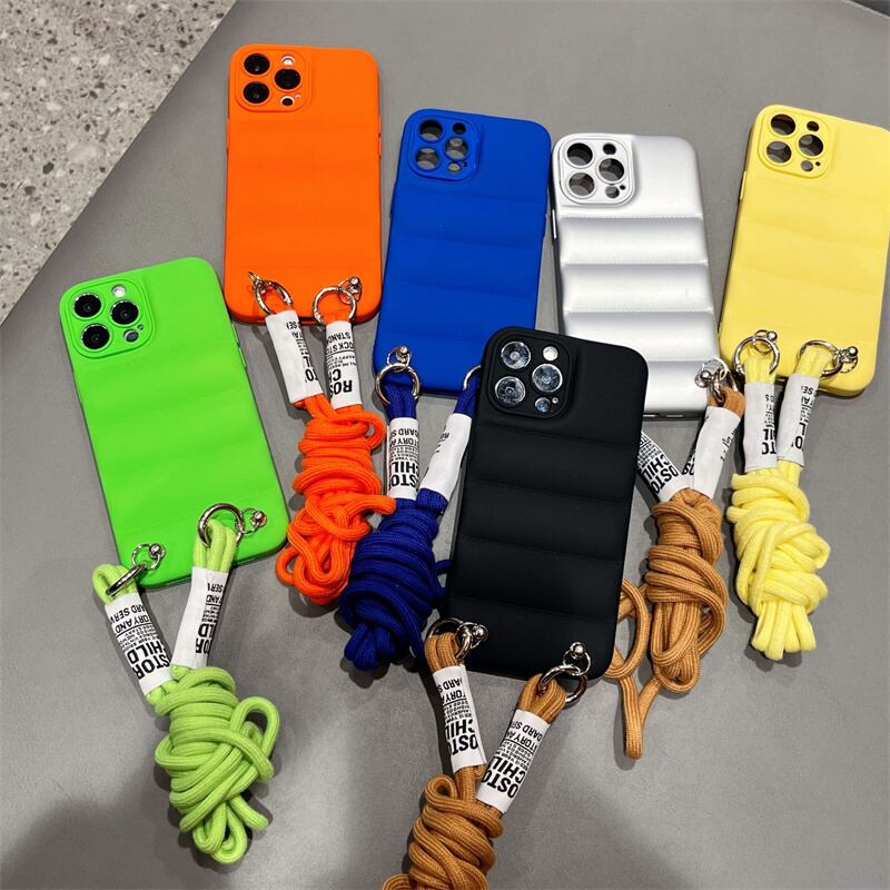 ショルダーストラップ付き iPhone14 ProMax~7Plusケース ダウンジャケット風 斜めがけ シンプル 無地 オシャレ 単色 おすすめ