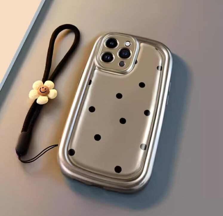 iPhone15 Pro Maxケース ポルカドット アイフォン15プロカバー ストラップ付き 花柄 iPhone14 13 12 11 Pro Max XS保護カバー レディース ファッション かわいい 人気スマホケース お洒落